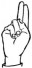 На ћирилици написано ФИЛИП ГАЋЕ састоји се из 9 слова [?]. Исписано ћириличном једноручном азбуком за глувонеме: